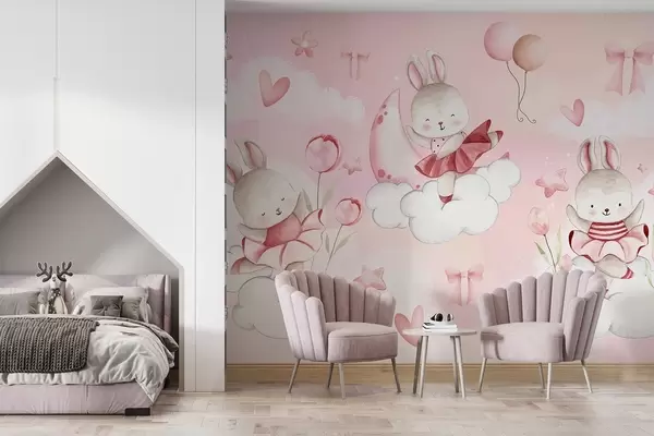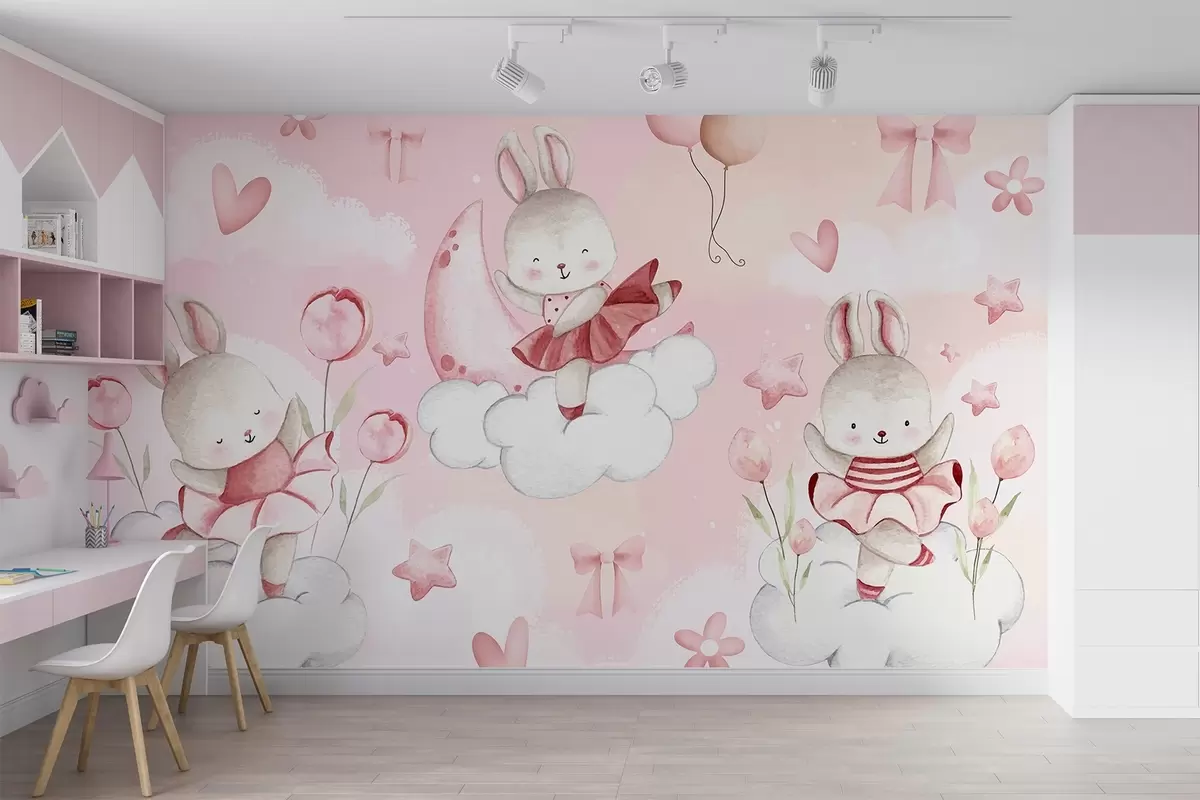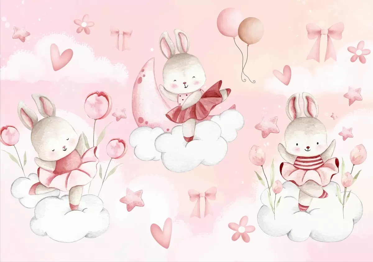Valokuvatapetti Kaneja vaaleanpunaisissa balettimekoissa pilvissä Nr w04333