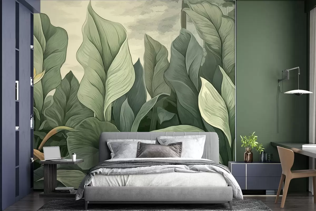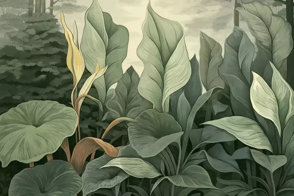 Valokuvatapetti Kasvitieteellisen tyylin trooppinen kasvi kuvitus Nr w04347