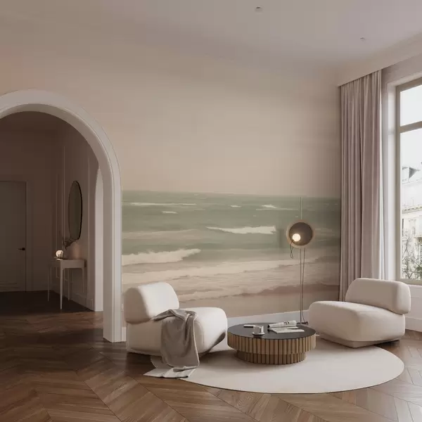 Valokuvatapetti Pehmeä vaaleanpunainen-vihreä merimaisema, jossa on lempeät aallot Nr w04348