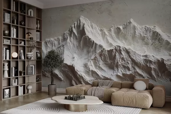 Valokuvatapetti Kohokuvioidut vuoret vaaleilla sävyillä, joissa on tekstuuri Nr w04396