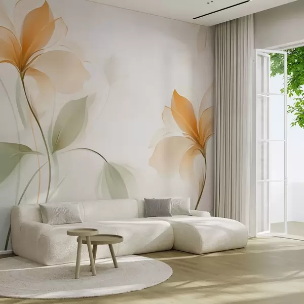 Valokuvatapetti Läpinäkyvät kukat, joissa on rikas oranssi keskusta Nr w04397v1