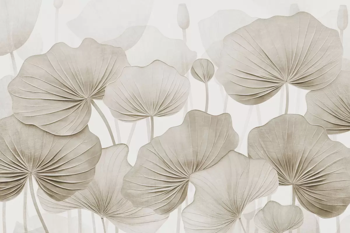 Valokuvatapetti Lootuksen lehdet, joissa on jäljitelmä ahdistuneesta tekstuurista Nr w04412v1