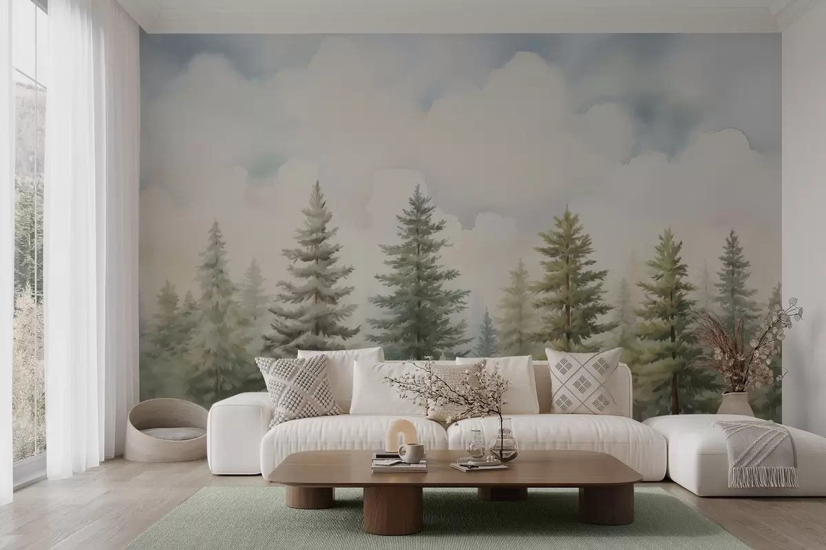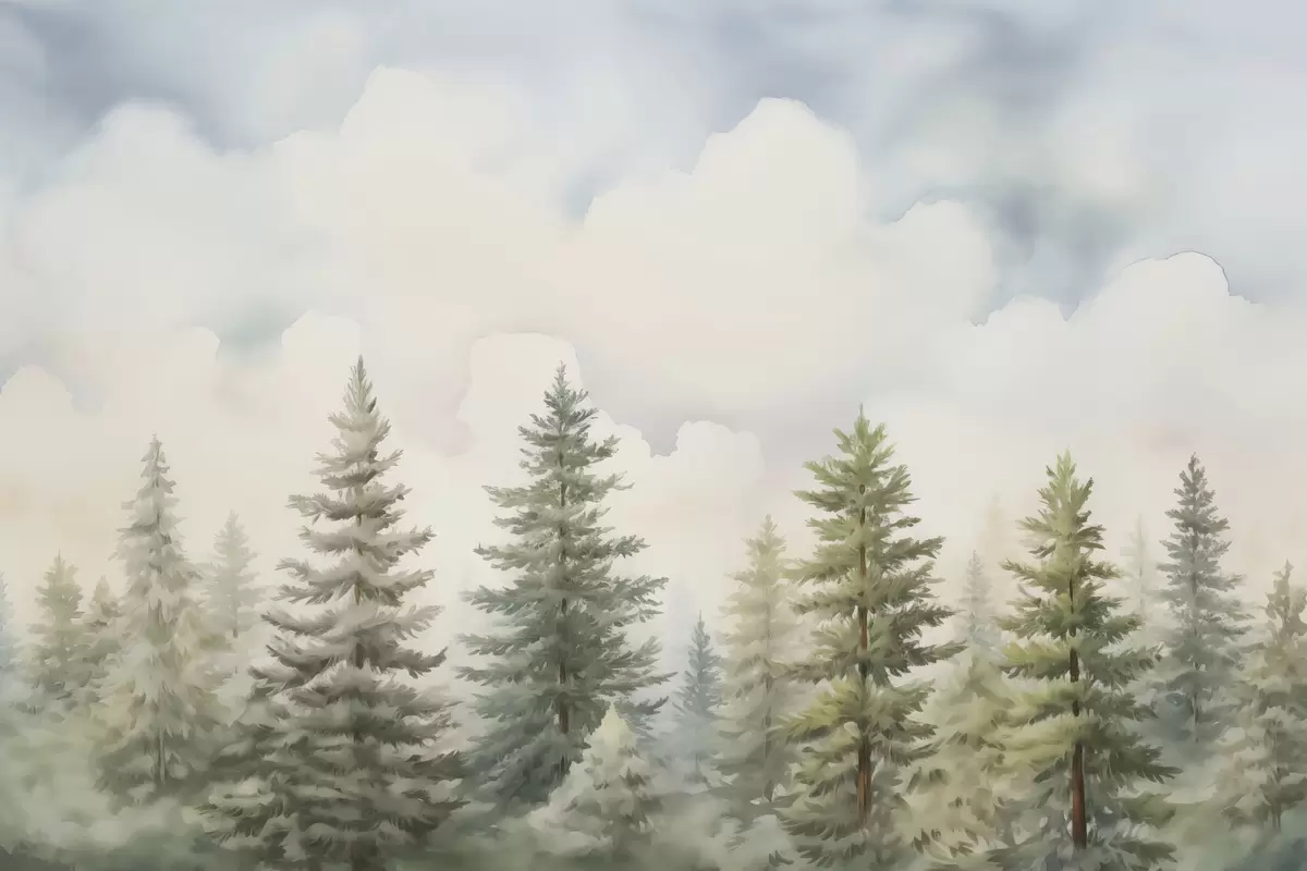 Valokuvatapetti Havumetsän jäljitelmämaalaus Nr w04414