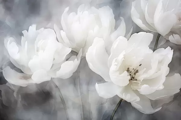 Valokuvatapetti Valkoisia kukkia sumuisella, herkällä taustalla Nr w04441