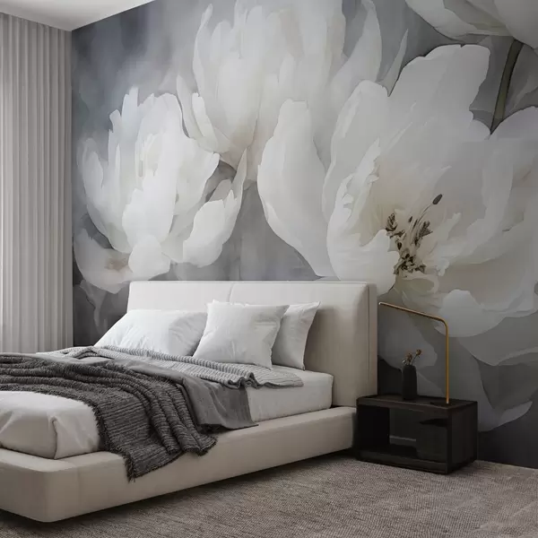 Valokuvatapetti Valkoisia kukkia sumuisella, herkällä taustalla Nr w04441