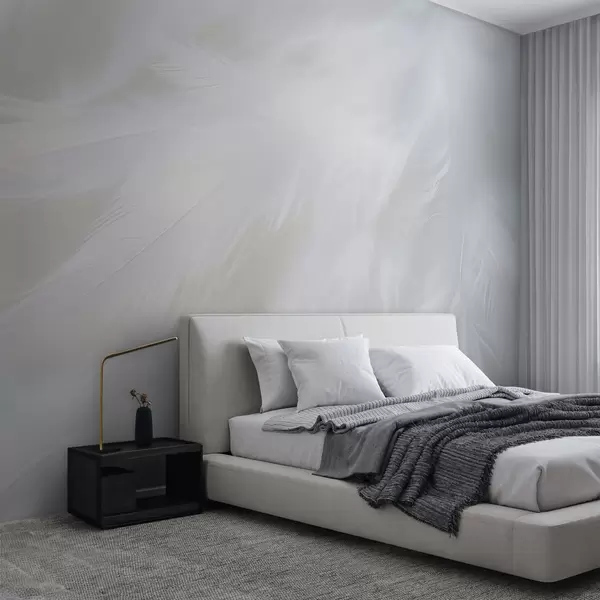 Valokuvatapetti Pehmeät valkoiset höyhenet, kevyt rakenne Nr w04442