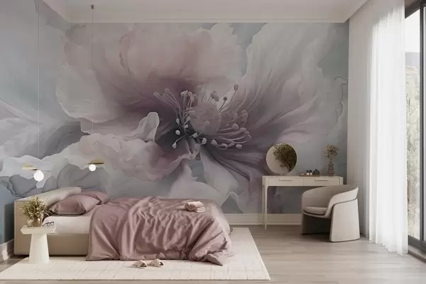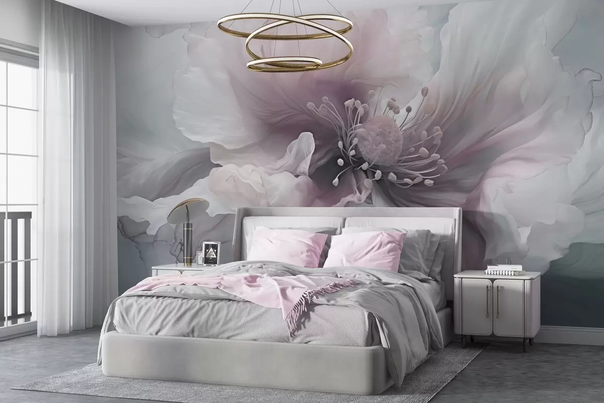 Valokuvatapetti Herkkä kukka vaaleanpunaisilla ja valkoisilla terälehdillä Nr w04446