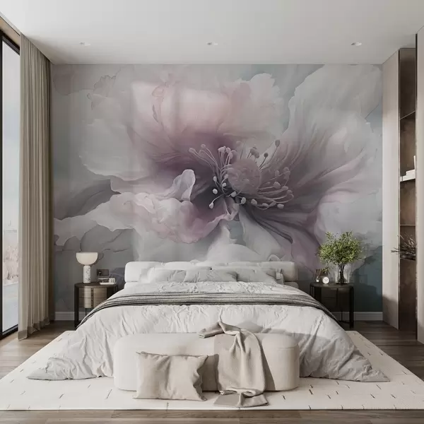 Valokuvatapetti Herkkä kukka vaaleanpunaisilla ja valkoisilla terälehdillä Nr w04446