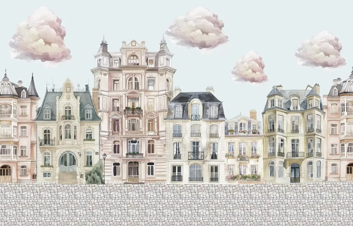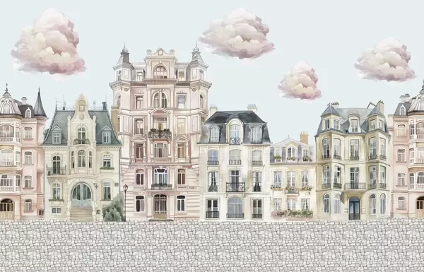 Valokuvatapetti Värikkäitä taloja, pilviä Nr w04474v1
