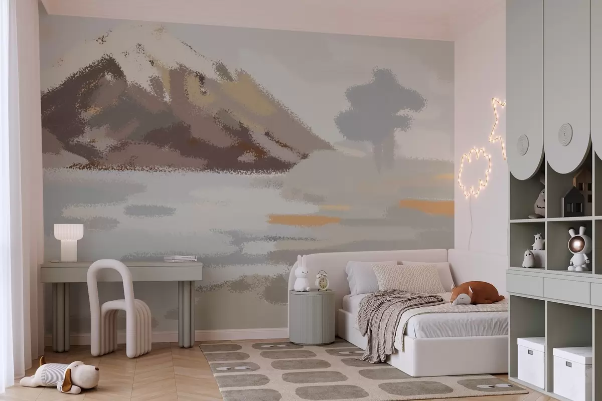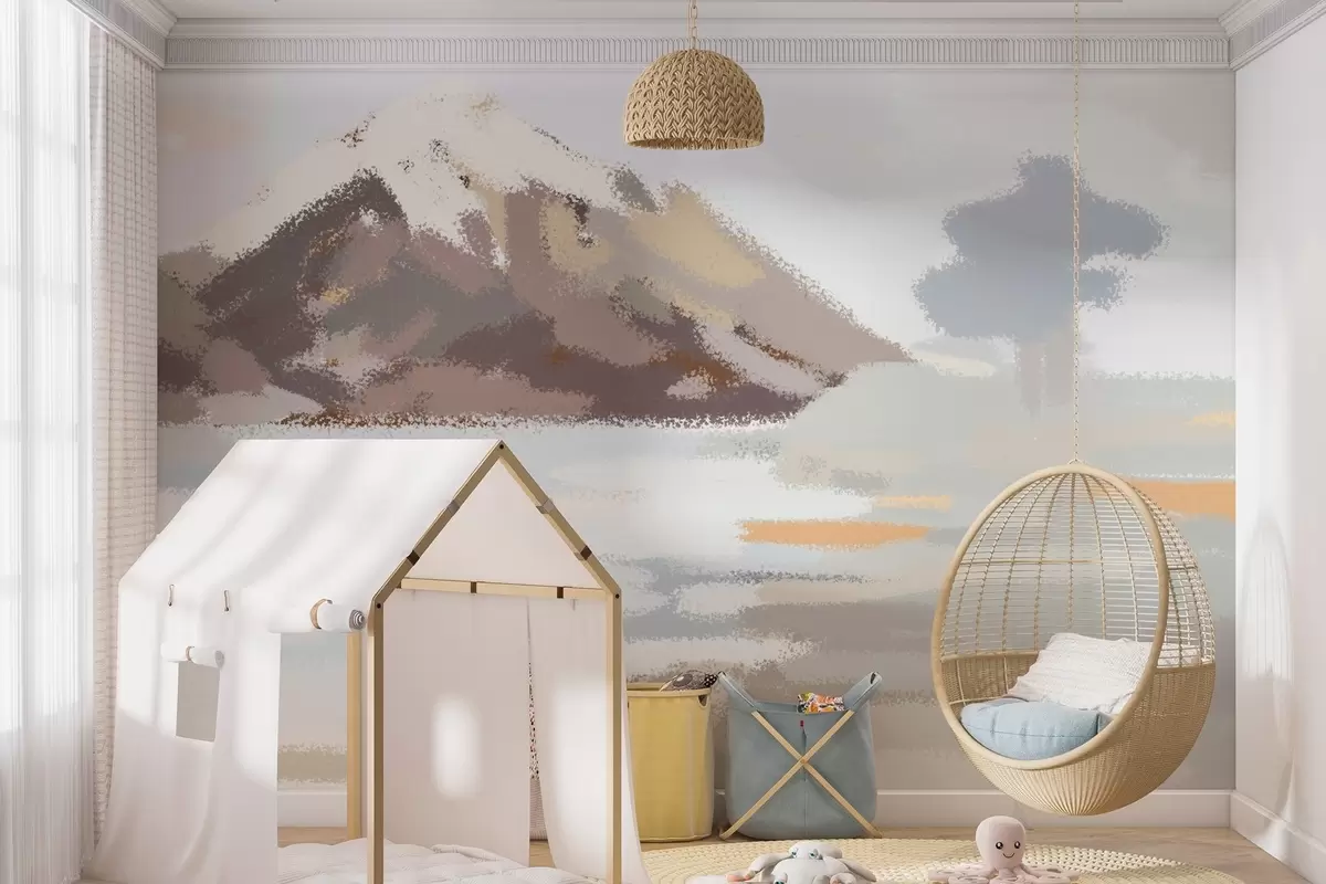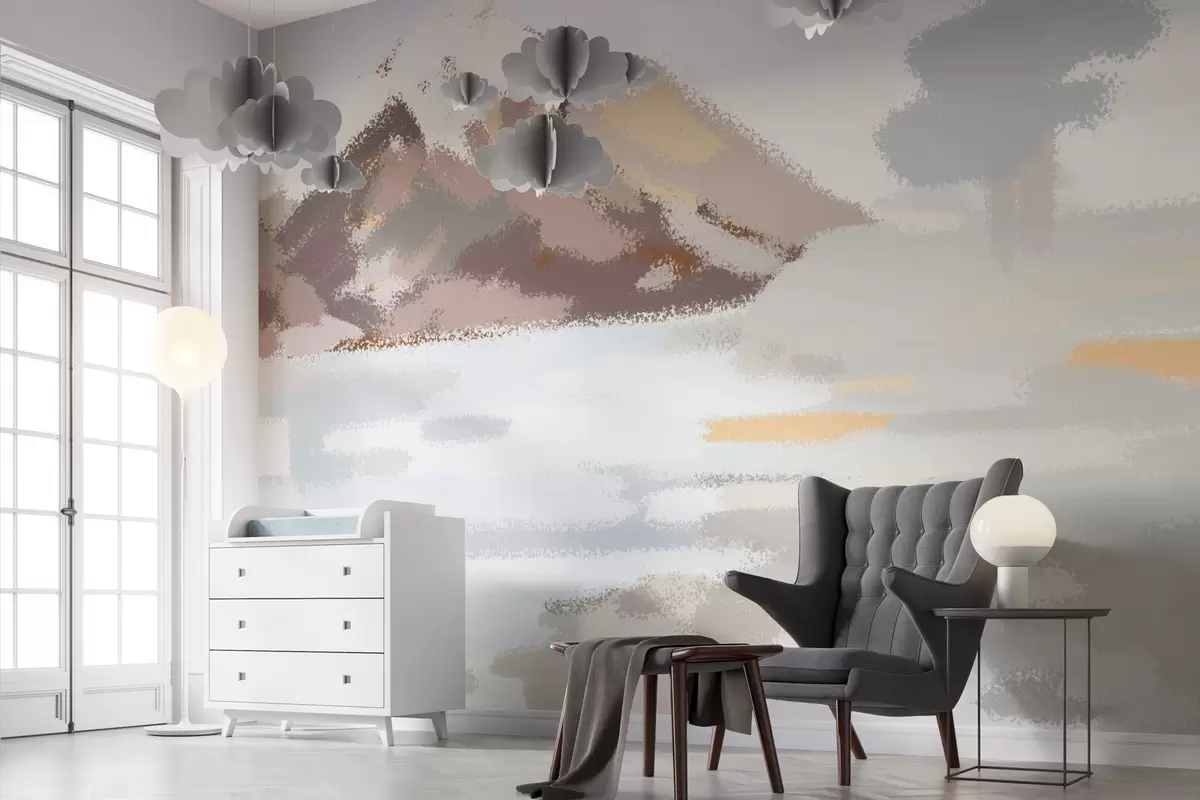 Valokuvatapetti abstrakti maisema lapsen piirustuksen tyyliin Nr w04498