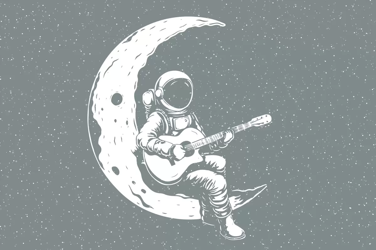 Valokuvatapetti Kosmonautti, kuu, kitara Nr w04514v1