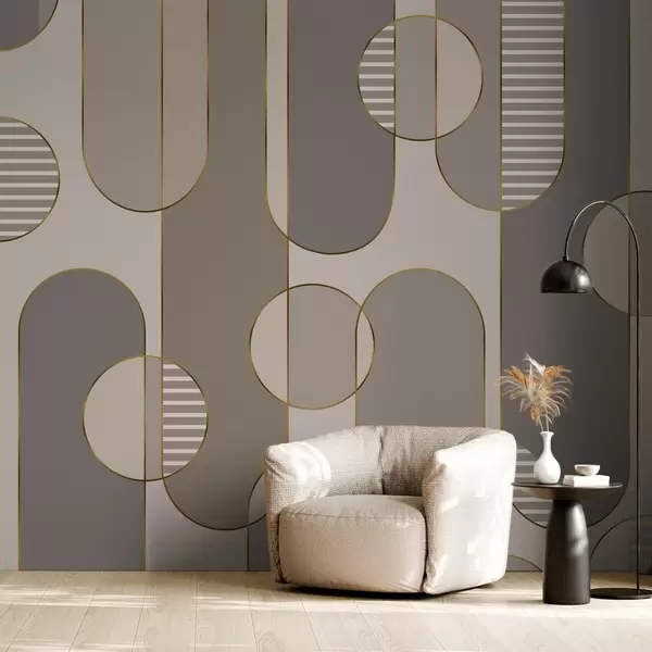 Valokuvatapetti Geometrinen abstrakti ruskealla ja viivoilla Nr w04523v2