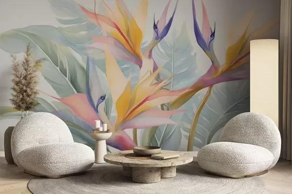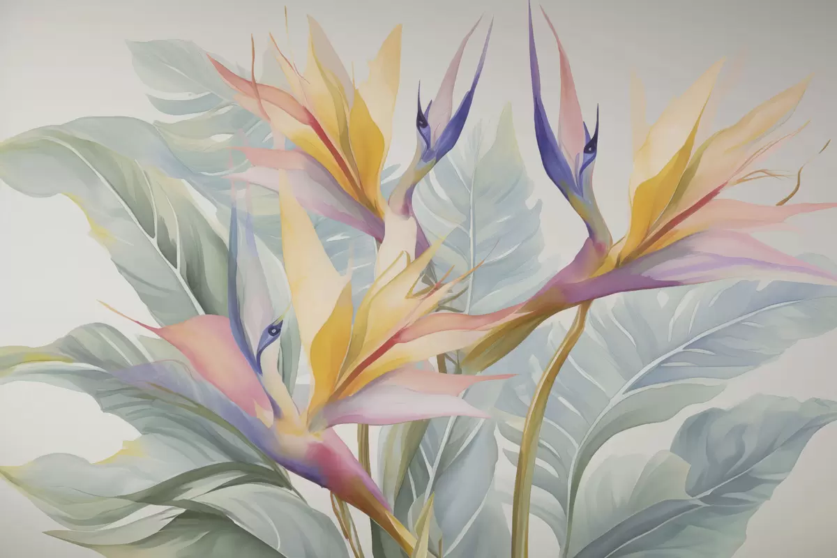 Valokuvatapetti Strelitzia-kukat ja lehdet Nr w04527