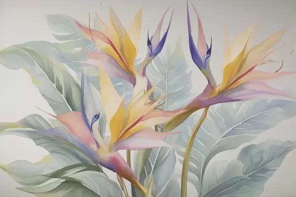 Valokuvatapetti Strelitzia-kukat ja lehdet w04527