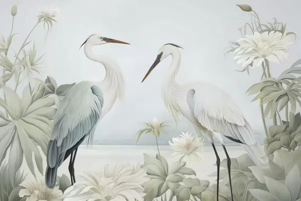 Valokuvatapetti Saarnaajat lammen rannalla Nr w04538