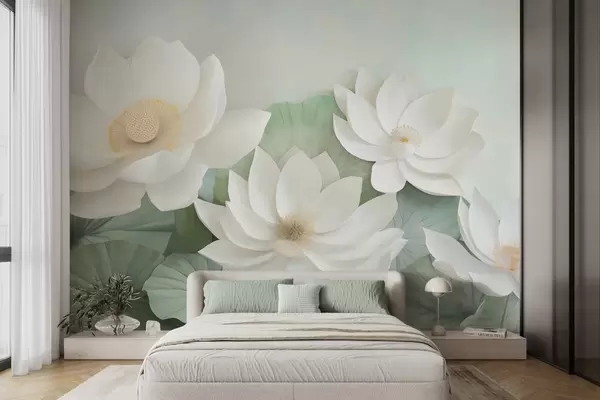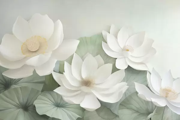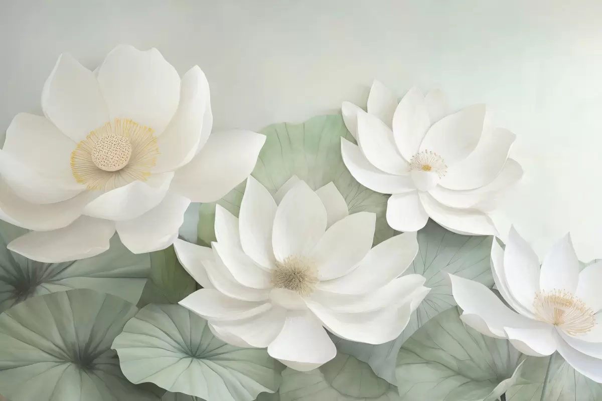 Valokuvatapetti Lotus-kukat lehtien keskellä Nr w04539