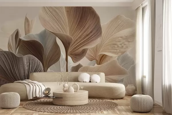 Valokuvatapetti Elegantit beige lehdet, joissa on hieno lineaarinen tekstuuri Nr w04549