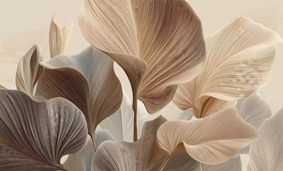 Valokuvatapetti Elegantit beige lehdet, joissa on hieno lineaarinen tekstuuri Nr w04549