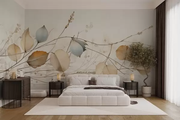 Valokuvatapetti Hienostuneet oksat, joissa on beigejä lehtiä Nr w04579