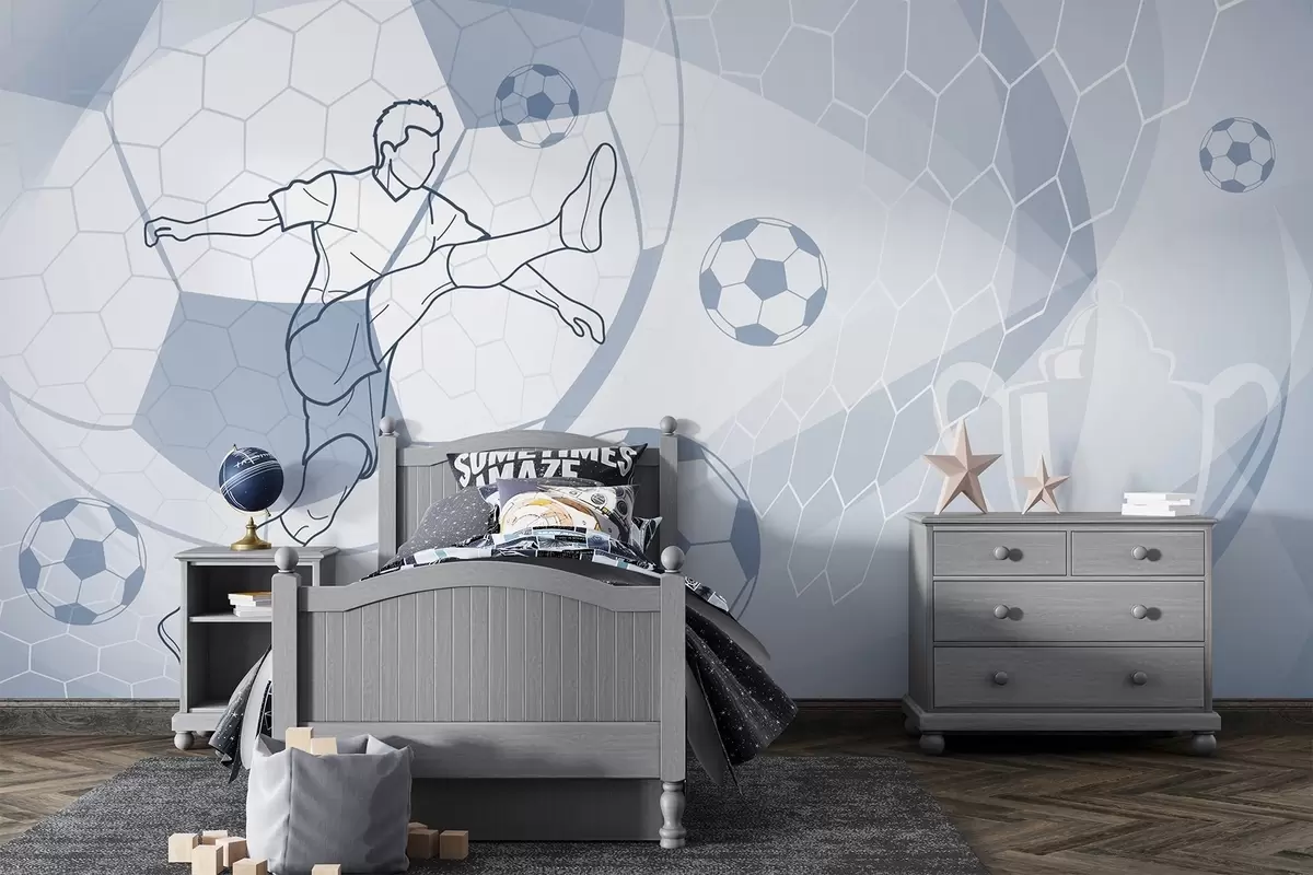 Valokuvatapetti Jalkapalloilija ja pallot Nr w04601