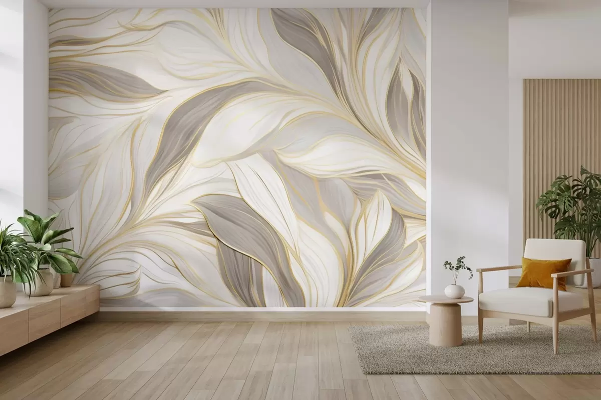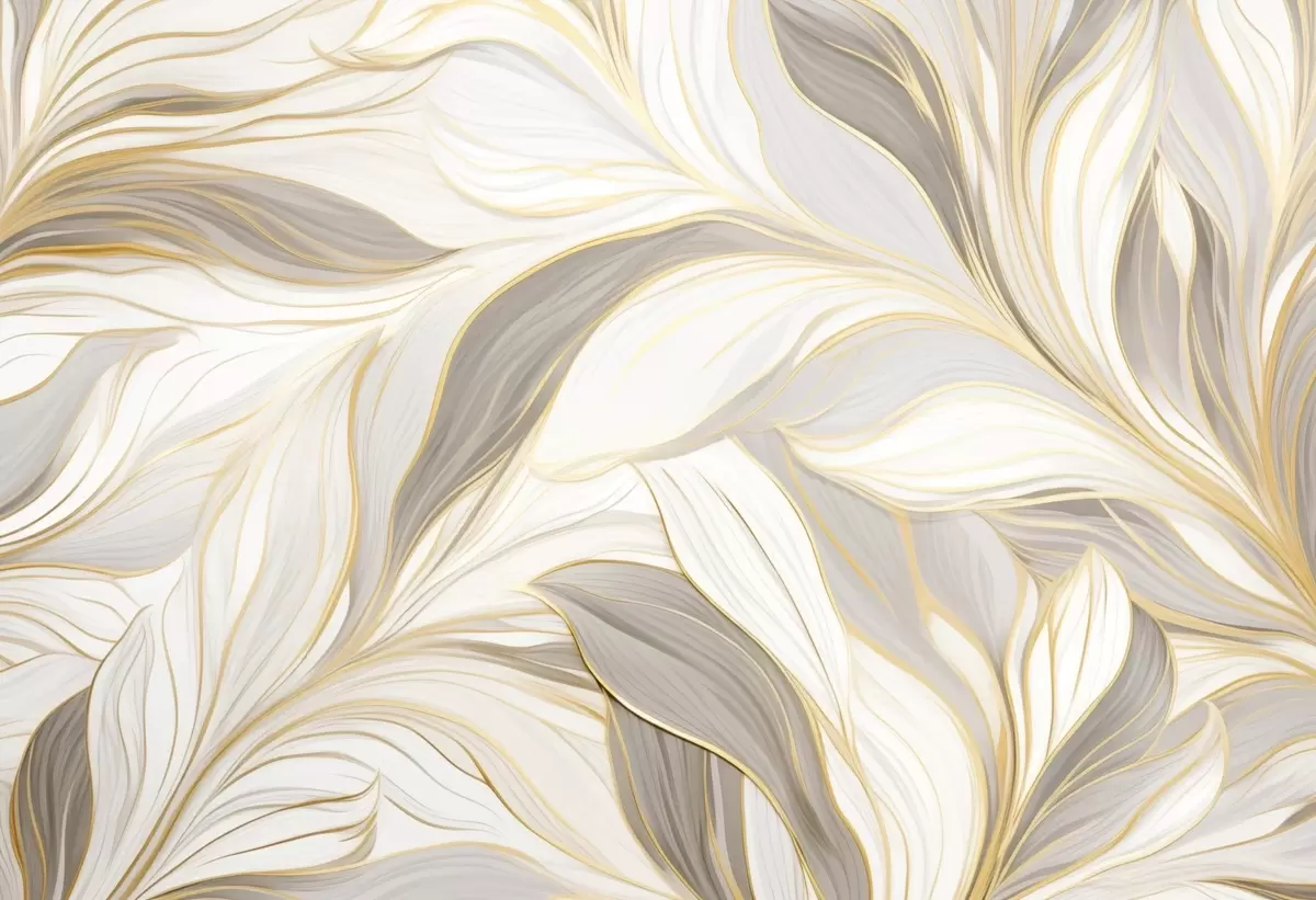Valokuvatapetti Lehdet, joissa on pehmeät kaarevat muodot vaalean beige-harmaissa sävyissä Nr w04609