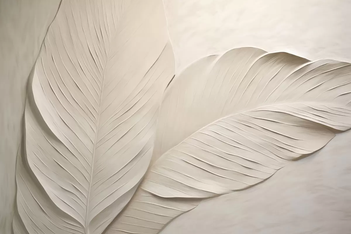 Valokuvatapetti Kohokuvioidut beige lehdet pehmeillä varjoilla Nr w04614