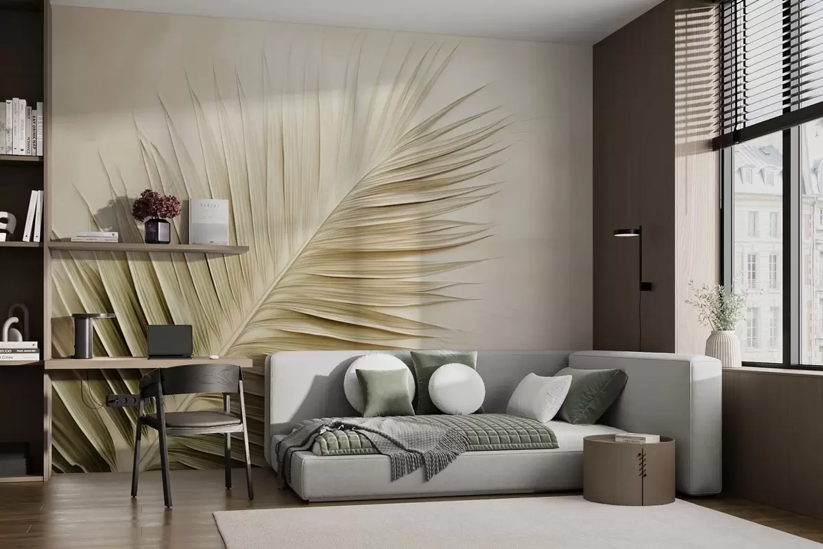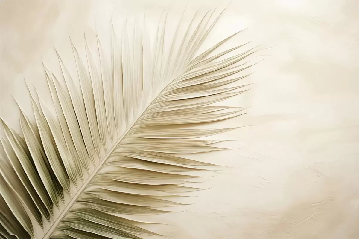 Valokuvatapetti Beige palmunlehti pehmeällä tekstuurilla taustalla Nr w04618
