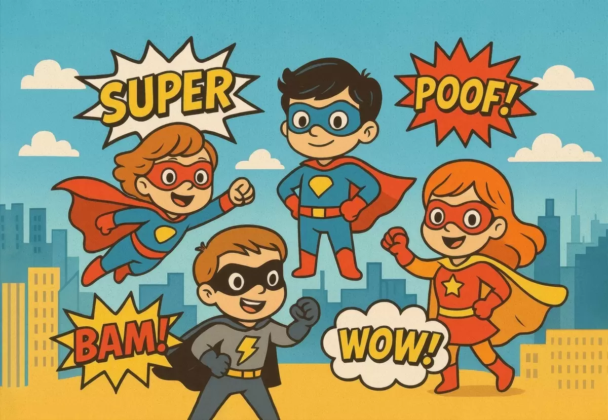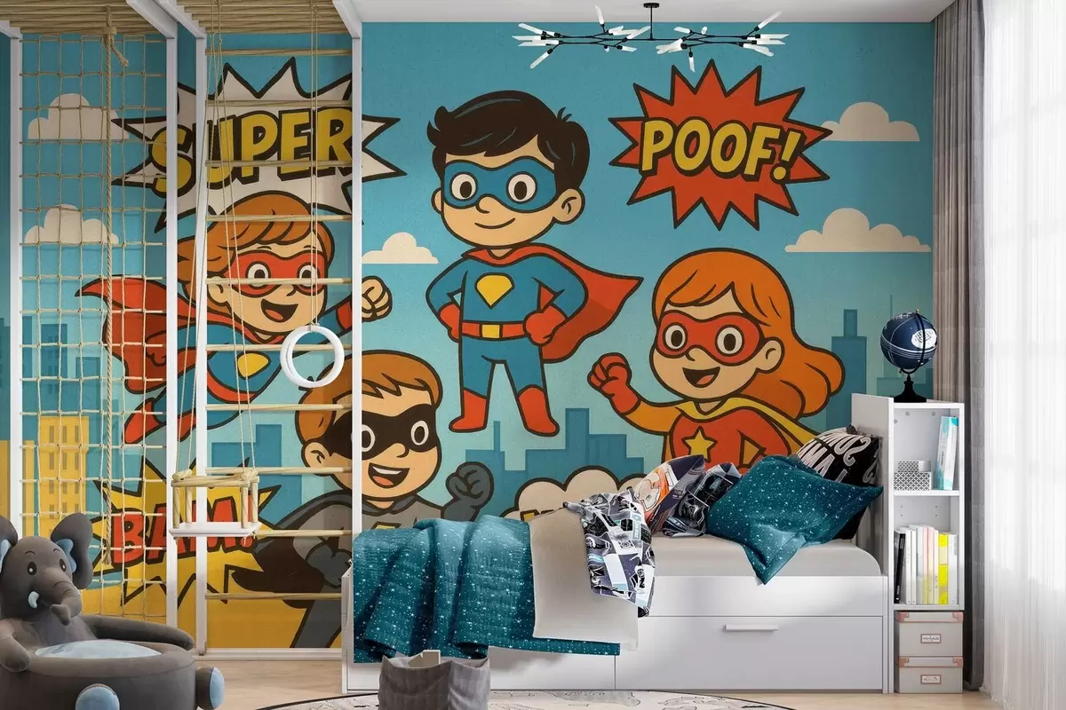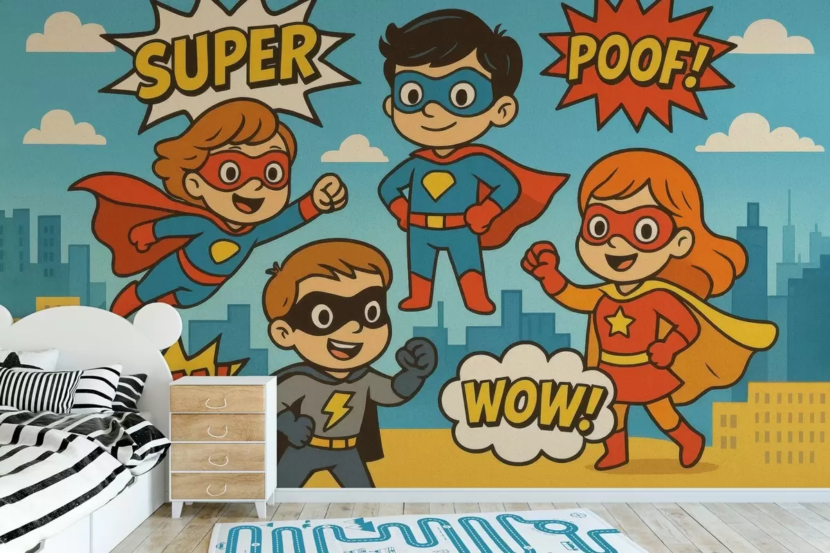 Valokuvatapetti hauskat sarjakuvamaiset supersankarit Nr w04625