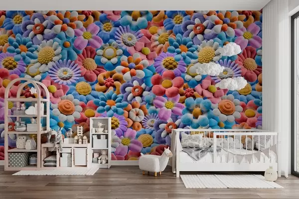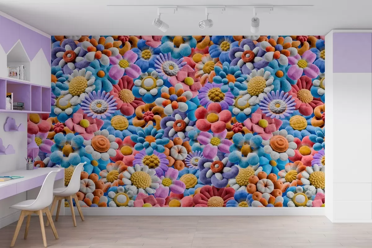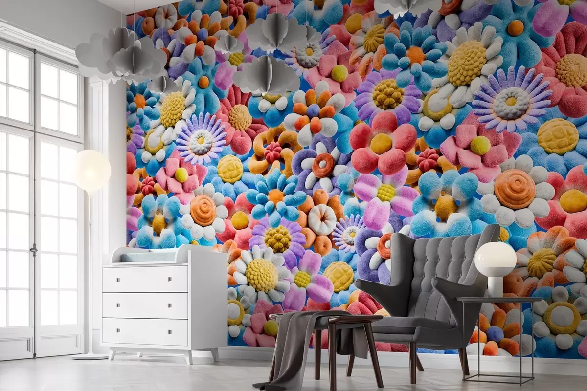 Valokuvatapetti kirkkaat, pörröiset kukat Nr w04626