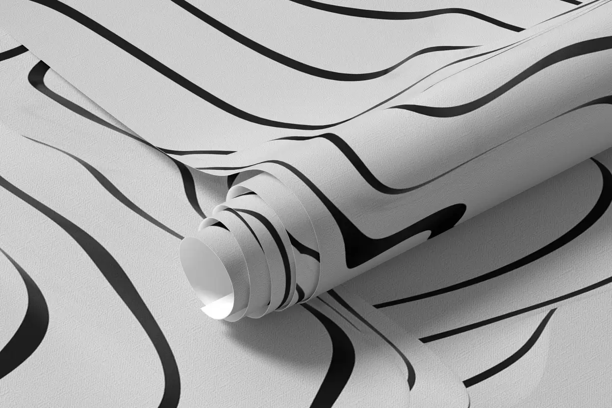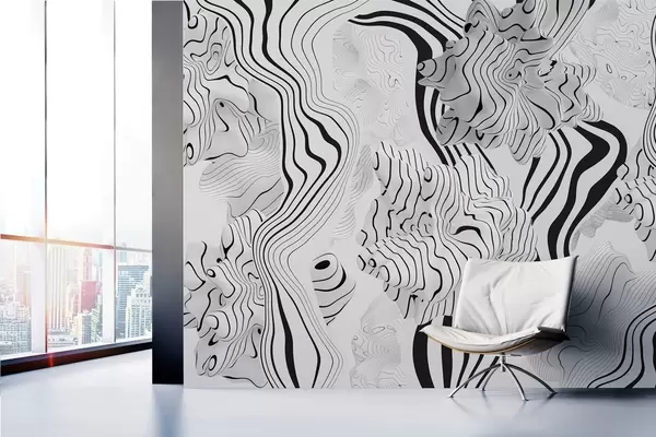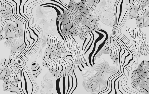Valokuvatapetti abstraktit orgaaniset muodot 3D-tyylillä valkoisissa ja harmaissa sävyissä mustilla raidoilla Nr w04627