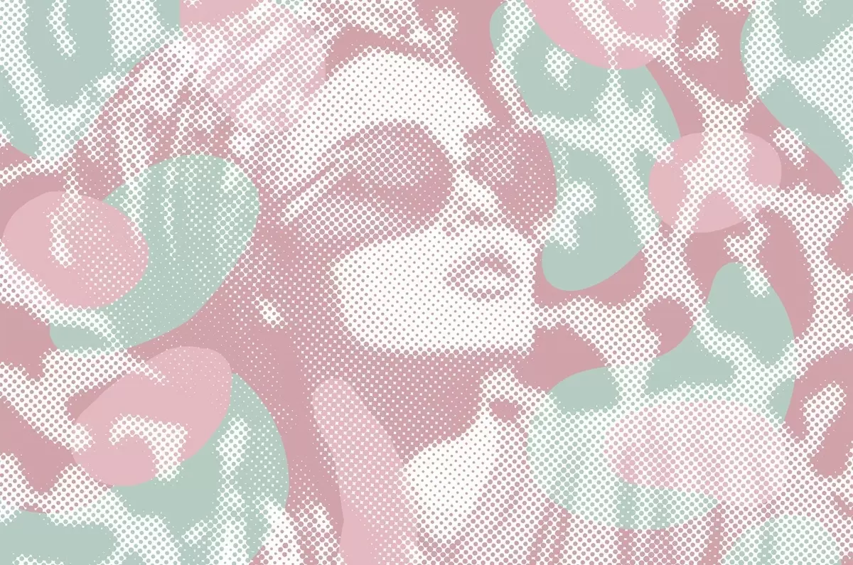 Valokuvatapetti naisen muotokuva leopardikuvioisella taustalla, pisteviivatyylillä, vaaleanpunaisilla ja vihreillä sävyillä Nr w04630v2