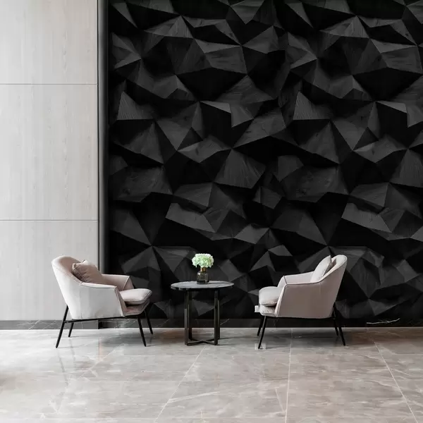 Valokuvatapetti tummasta puusta valmistetun kulmikkaan reliefiseinän jäljitelmä Nr w04632v1