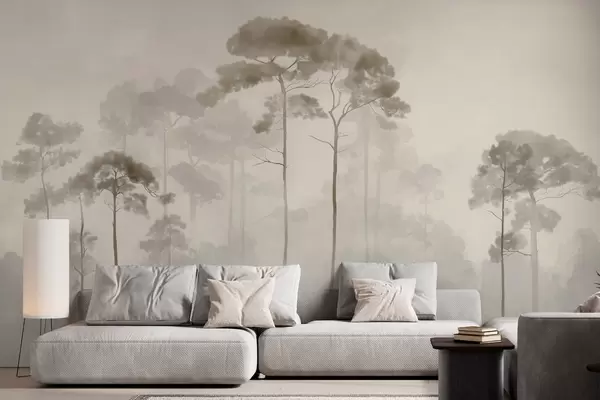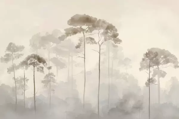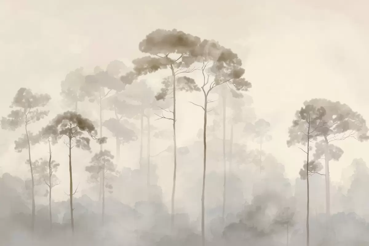 Valokuvatapetti vaaleat mäntyjen siluetit vesiväri-tyylillä Nr w04634