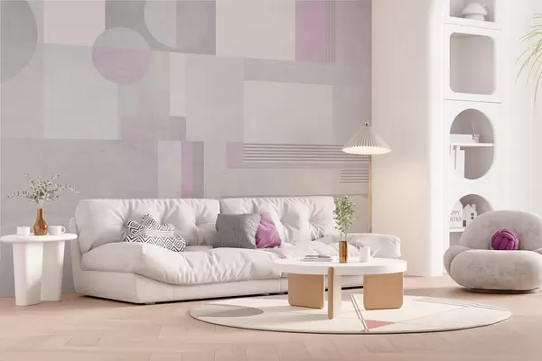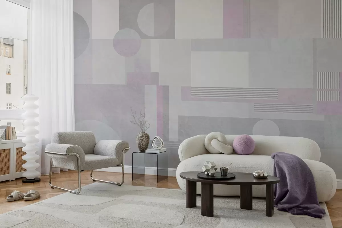 Valokuvatapetti abstrakti geometria harmaissa ja laventelin sävyissä Nr w04635v1
