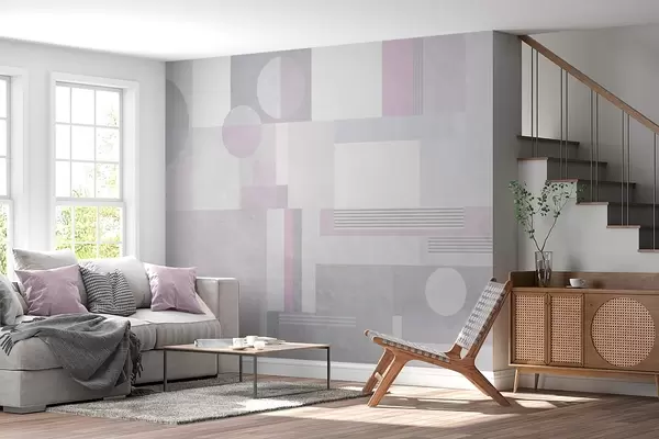 Valokuvatapetti abstrakti geometria harmaissa ja laventelin sävyissä Nr w04635v1