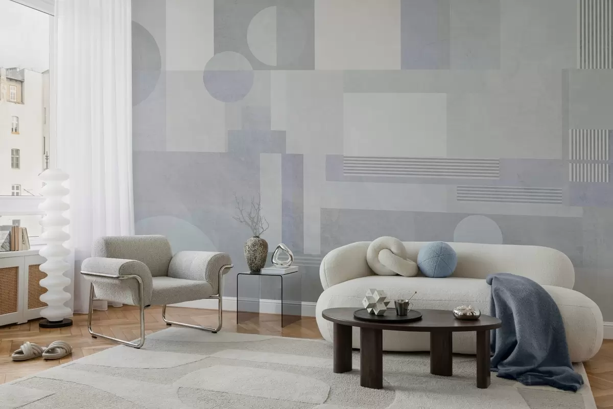 Valokuvatapetti abstrakti geometria harmaansinisissä sävyissä Nr w04635v2