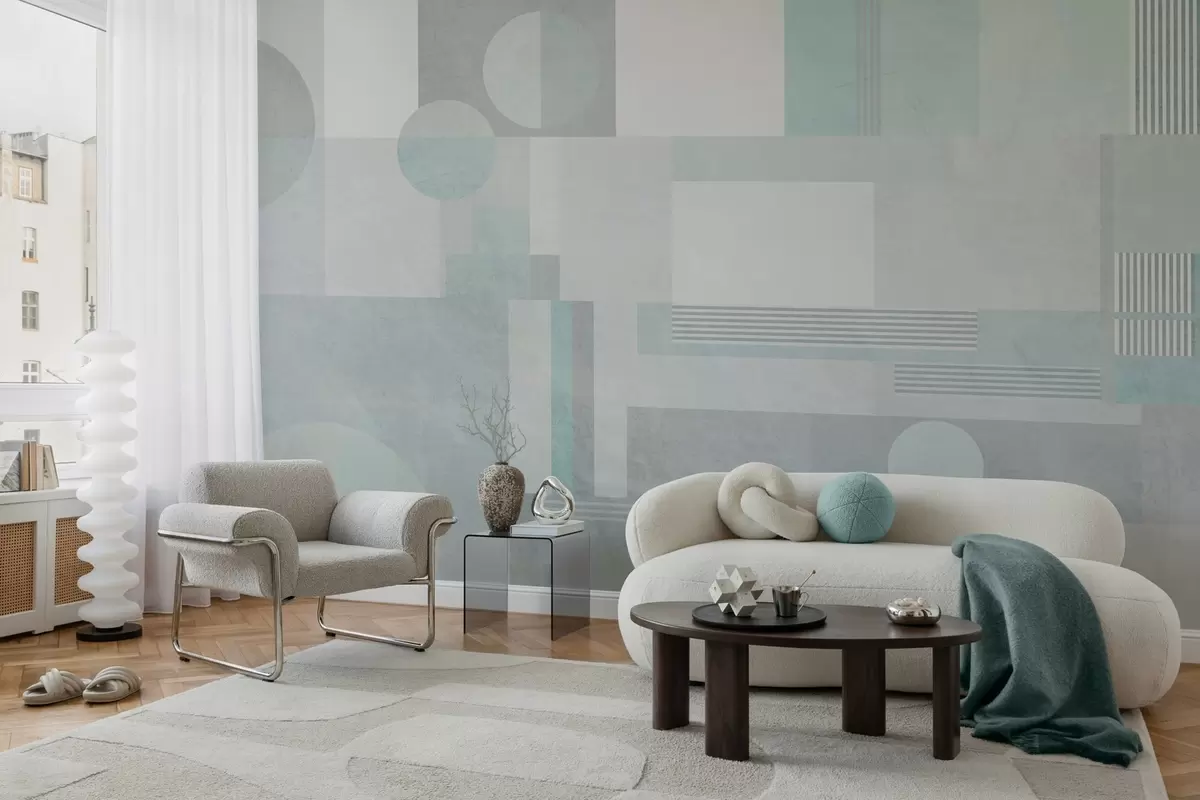 Valokuvatapetti abstrakti geometria harmaavihreissä sävyissä Nr w04635v3