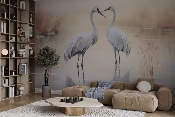 Valokuvatapetti Saarnaajat lammen rannalla Nr w04654