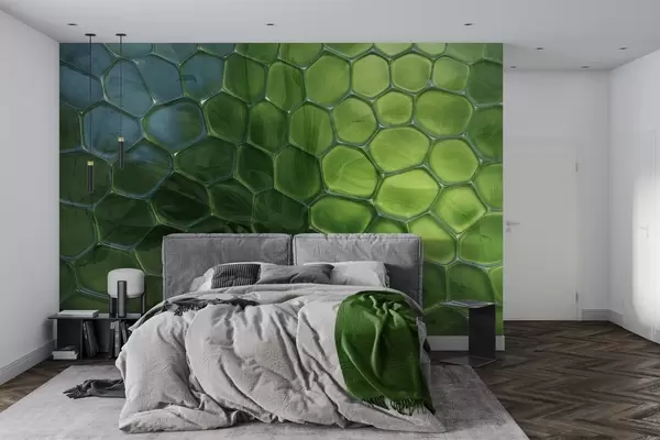 Valokuvatapetti Lehdet lasisten hunajakennojen läpi w04667