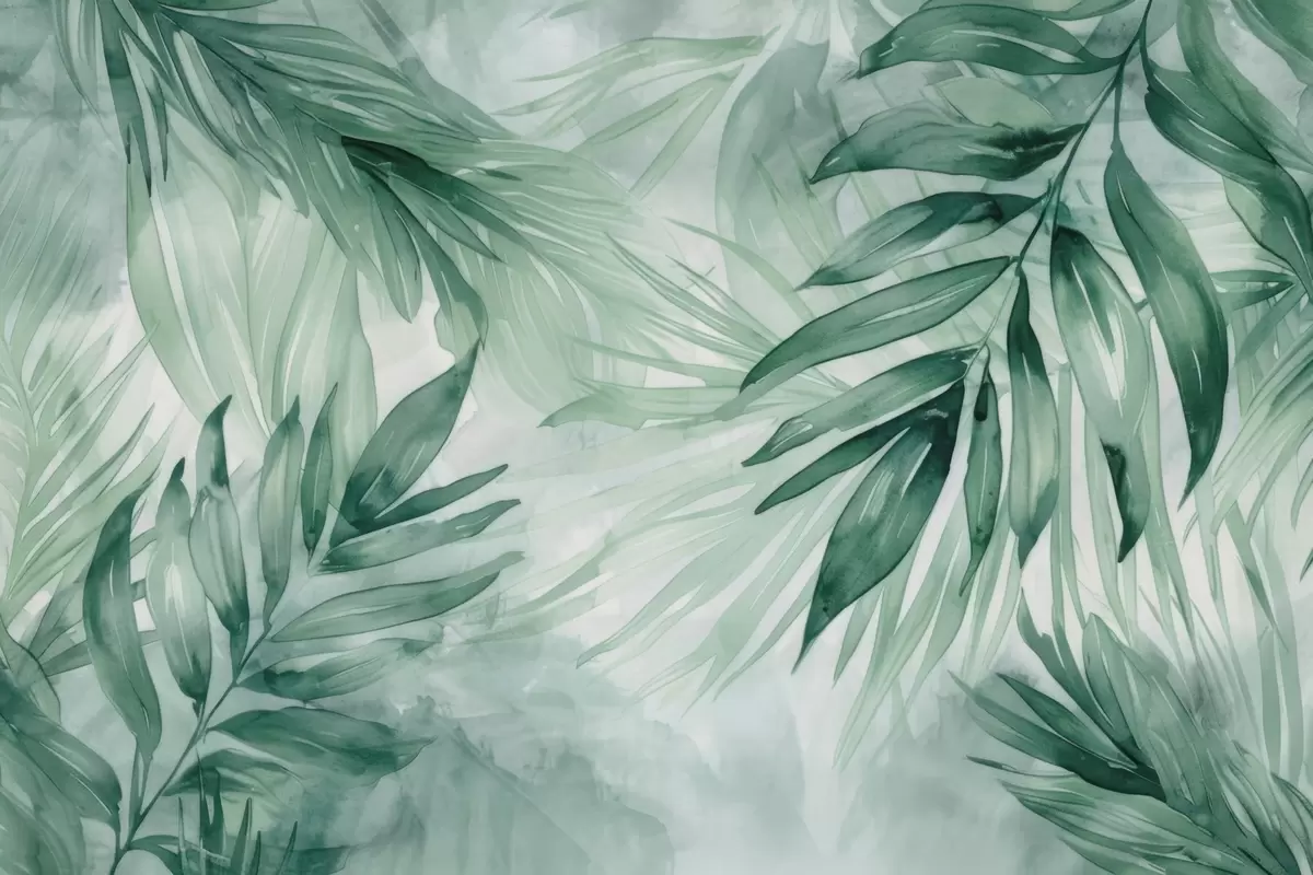 Valokuvatapetti Saniaisen lehdet vesiväri w04694