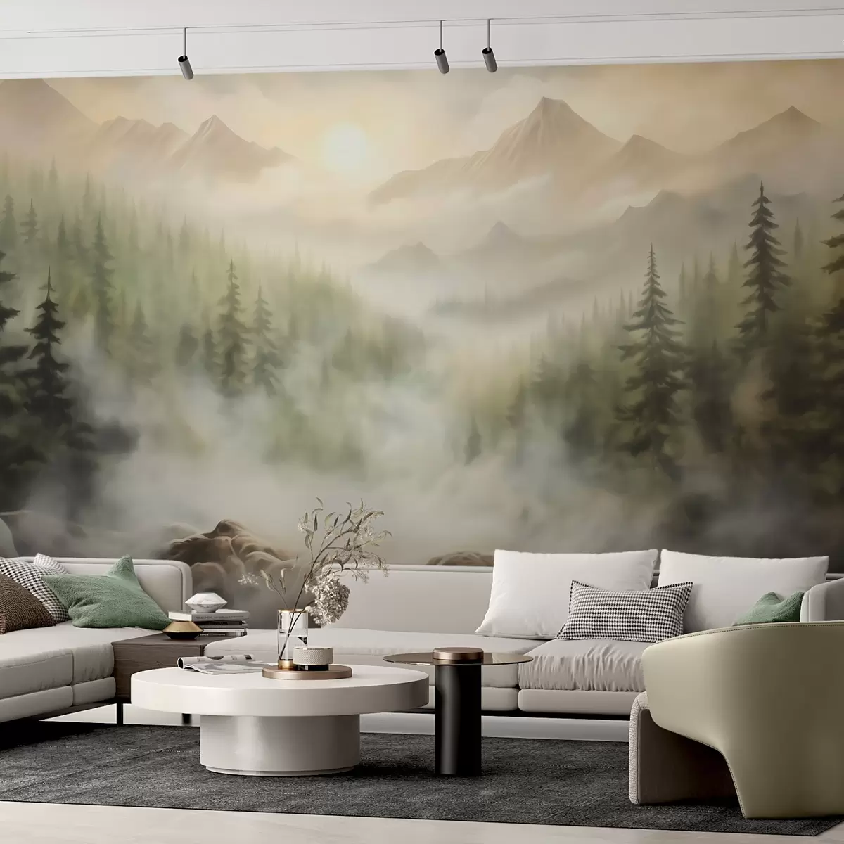 Valokuvatapetti Metsä sumussa vuorten taustalla Nr w04730