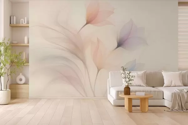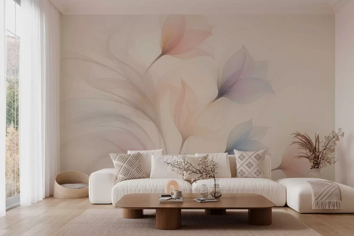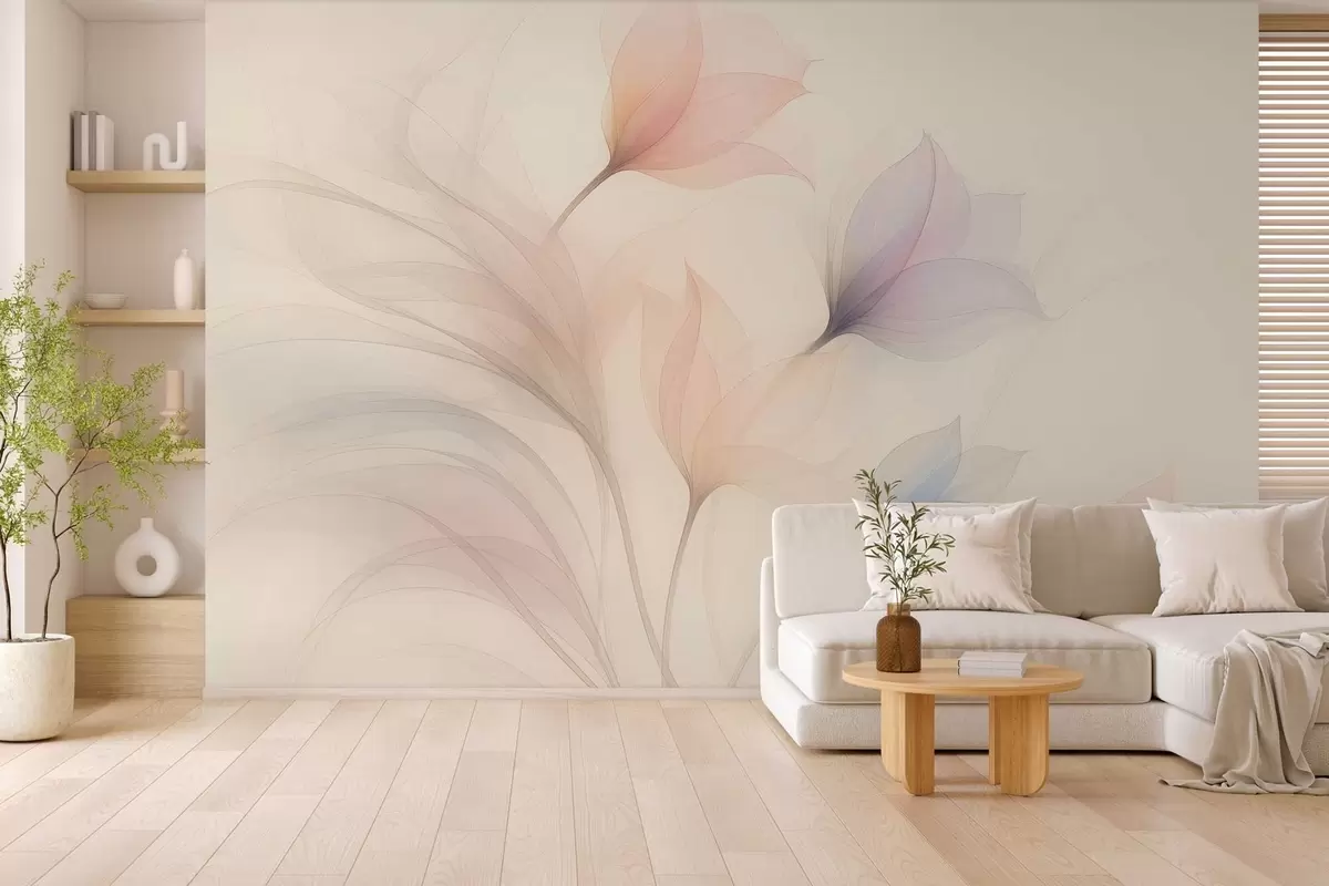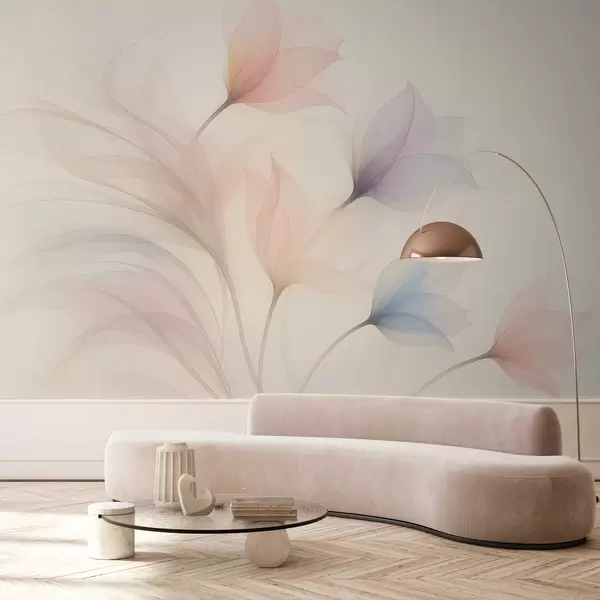 Valokuvatapetti herkät puoliläpinäkyvät tulppaanit beige-värisellä taustalla Nr w04754