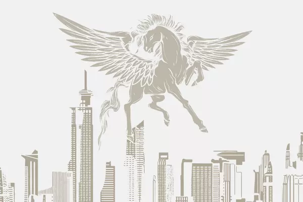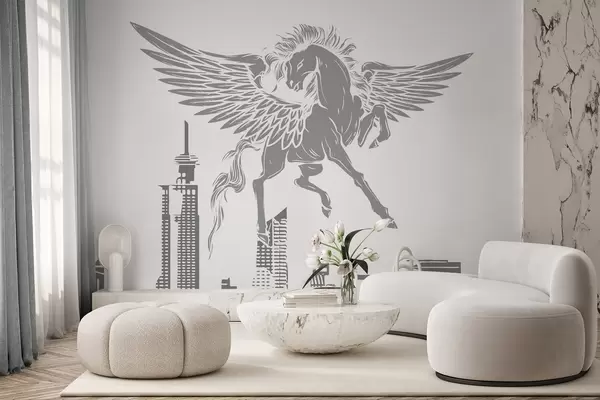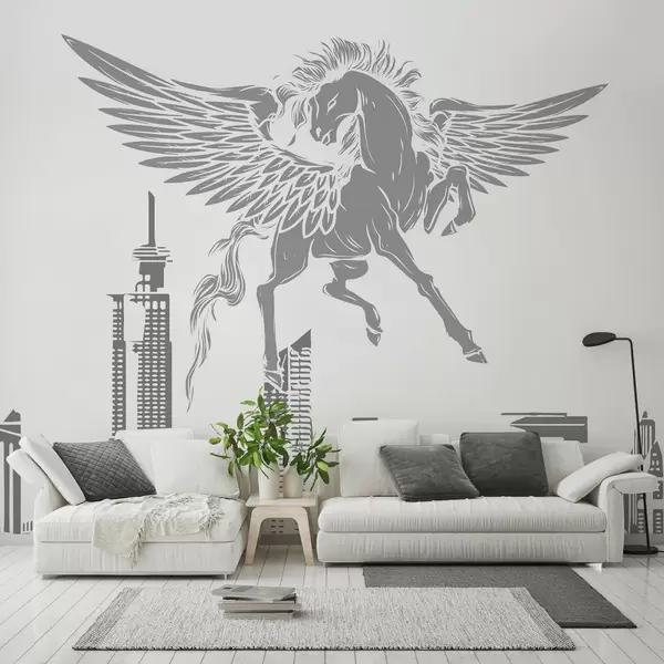Valokuvatapetti Pegasus kaupungin yllä Nr w04777v2