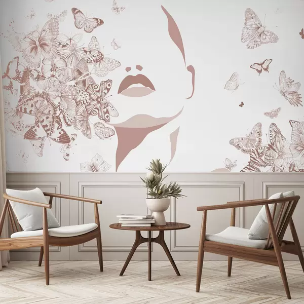Valokuvatapetti Kasvojen siluetti perhosten keskellä Nr w04778