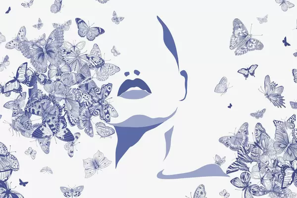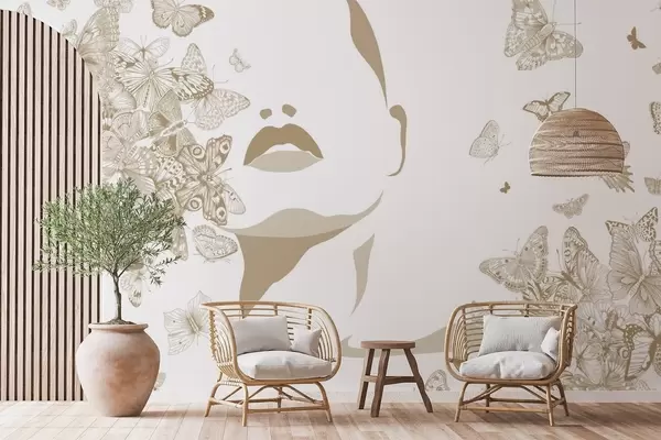 Valokuvatapetti Kasvojen siluetti perhosten keskellä Nr w04778v2