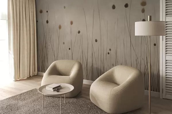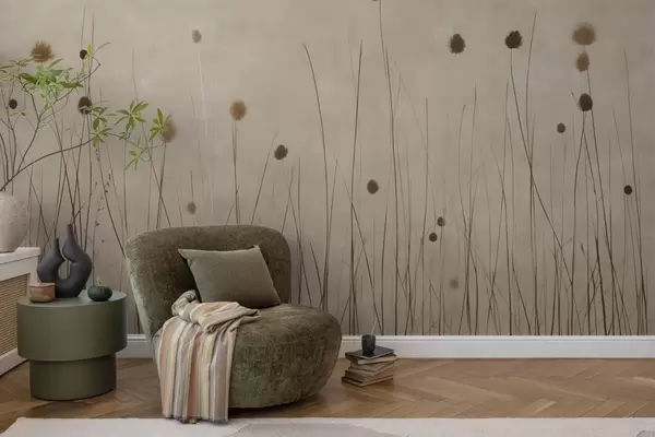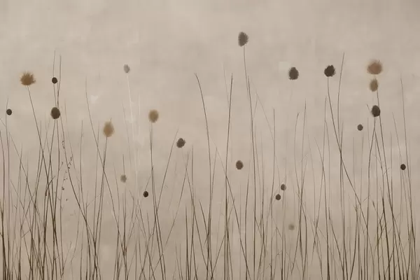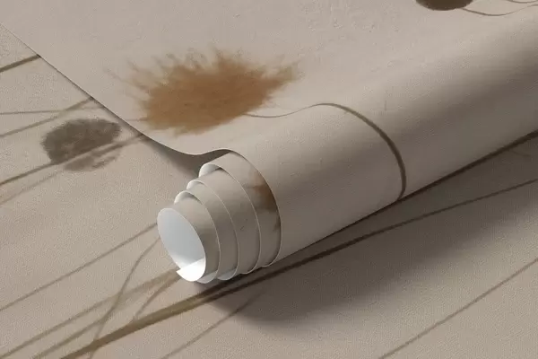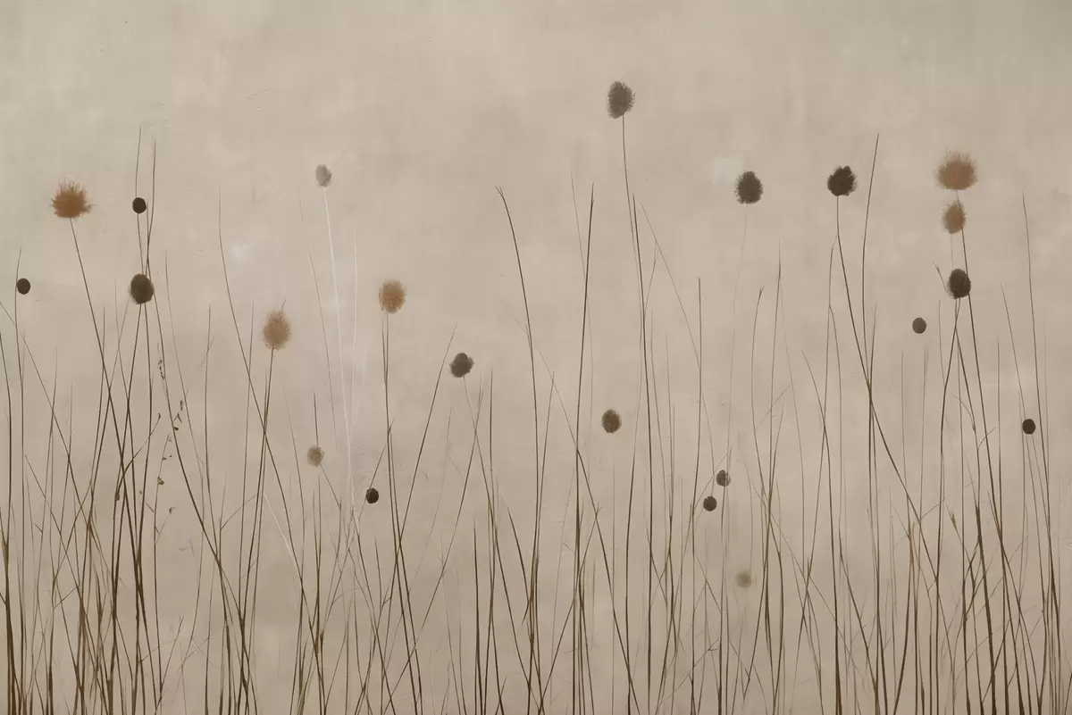 Valokuvatapetti Ohut ruoho ja pörröiset siemenpäät lämpimällä beige-taustalla Nr w04793