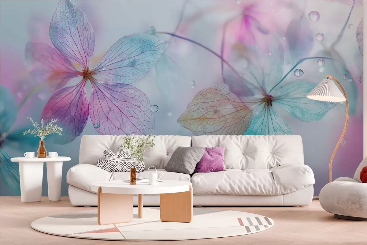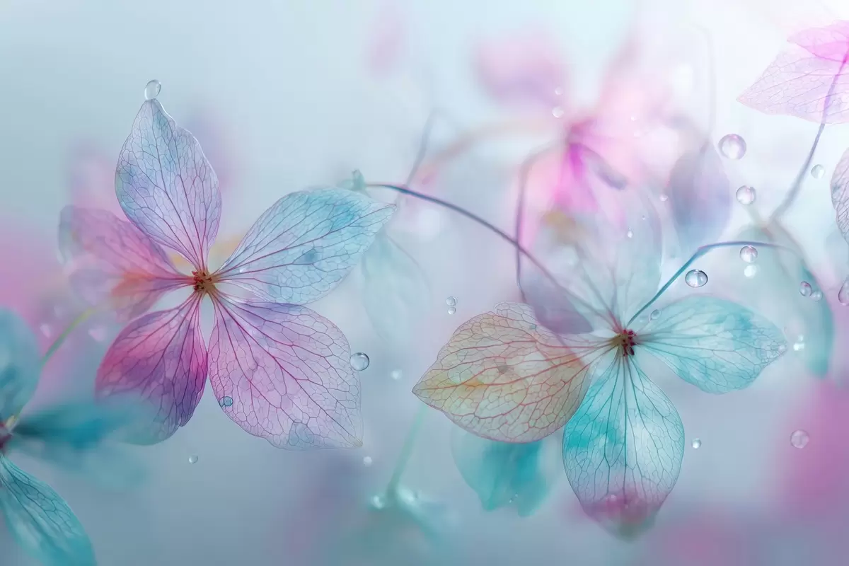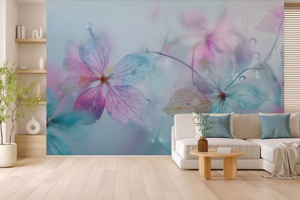 Valokuvatapetti herkät kukat, joiden suonet ovat veden alla Nr w04809