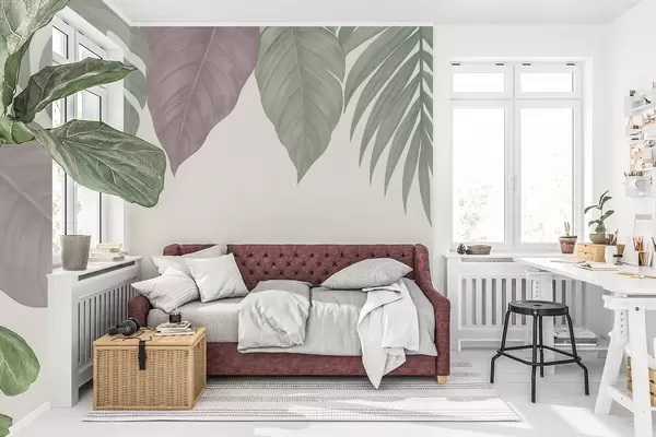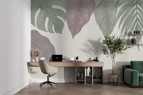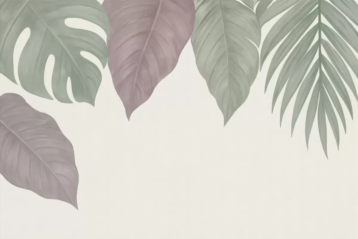 Valokuvatapetti suuret trooppiset lehdet yksinkertaisessa tyylissä, ylhäältä katsottuna Nr w04819