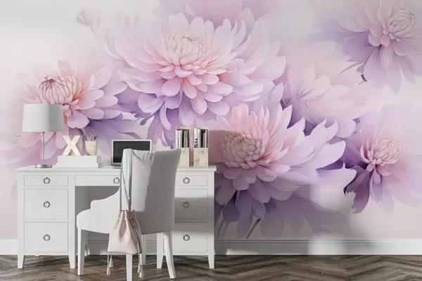 Valokuvatapetti Rehevät vesivärikrysanteemit vaalealla taustalla Nr w04832