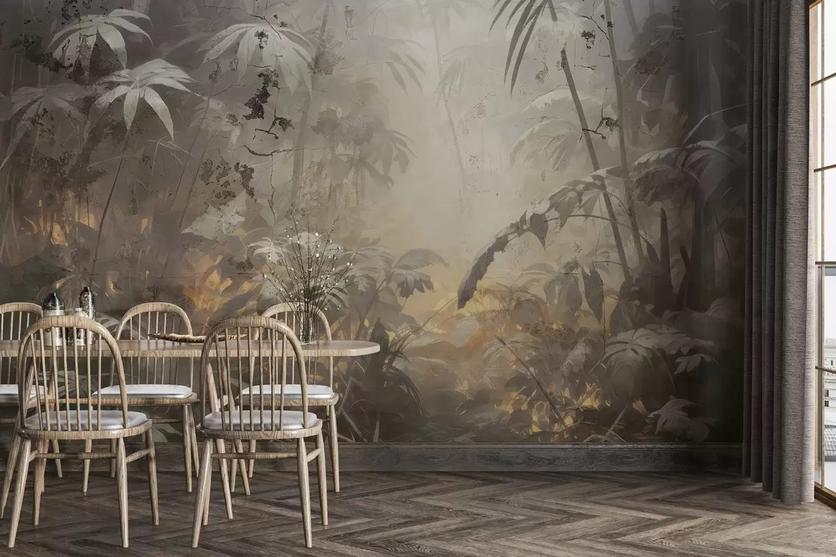 Valokuvatapetti Maalattu viidakko grunge-betoniseinän takana Nr w04833